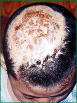 5、兩年后隨訪,創(chuàng)面上皮化愈合,完全覆蓋顱骨。