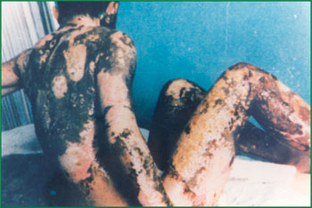 化學(xué)燒傷對(duì)皮膚的進(jìn)行性損傷使創(chuàng)面加深,同時(shí)因毒素吸收而造成全身臟器功能受損,病情危重。燒傷濕潤暴露療法配合全身支持療法,適用于各類化學(xué)燒傷的治療并取得了顯著療效。