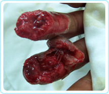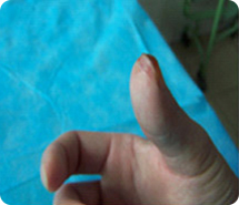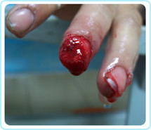 手是人體的一個(gè)重要器官,具有高度發(fā)達(dá)的運(yùn)動(dòng)和感覺功能。手部解剖精細(xì)、結(jié)構(gòu)復(fù)雜、組織密集、相互交錯(cuò),共由27塊骨、19塊肌肉、17條肌腱以及眾多神經(jīng)、血管、腱鞘、滑囊等組織構(gòu)成。它們相互協(xié)同作用,完成比較復(fù)雜繁鎖的工作。隨著機(jī)械化程度的提高以及交通事故和生活上意外事故的上升,很容易造成手部損傷,尤其是手指的外傷非常常見。國外文獻(xiàn)報(bào)道,在急診創(chuàng)傷病例中,手外傷所占的比例在15%~28.6%在之間。特別是手指末節(jié)、指端損傷較常見。