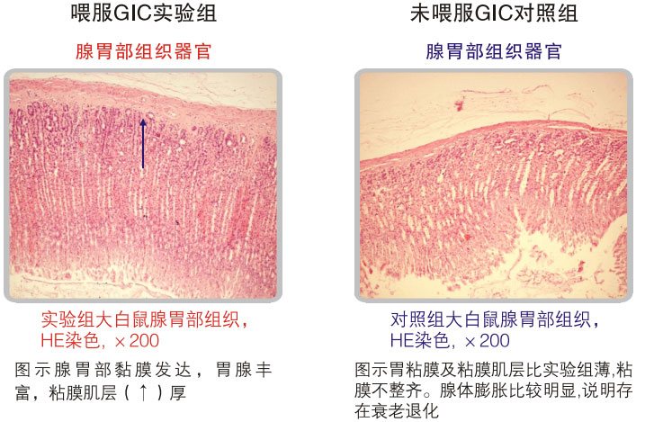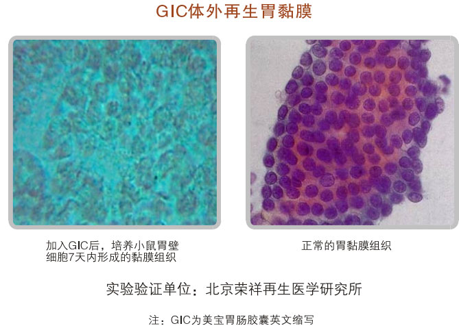 對10個(gè)月大的雄性大白鼠進(jìn)行526天的胃腸器官原位再生復(fù)原的實(shí)驗(yàn)證明:美寶胃腸再生復(fù)原技術(shù)可保障胃腸黏膜及相關(guān)腺體組織、平滑肌肌層旺盛的活力,未使用美寶胃腸再生復(fù)原技術(shù)對照組的實(shí)驗(yàn)結(jié)果是胃腸黏膜萎縮、老化明顯、腺體明顯減少、平滑肌層變薄。