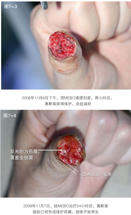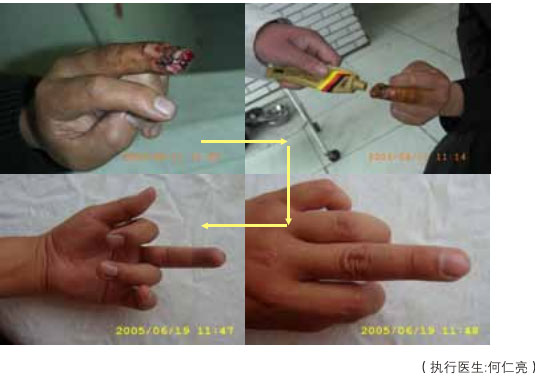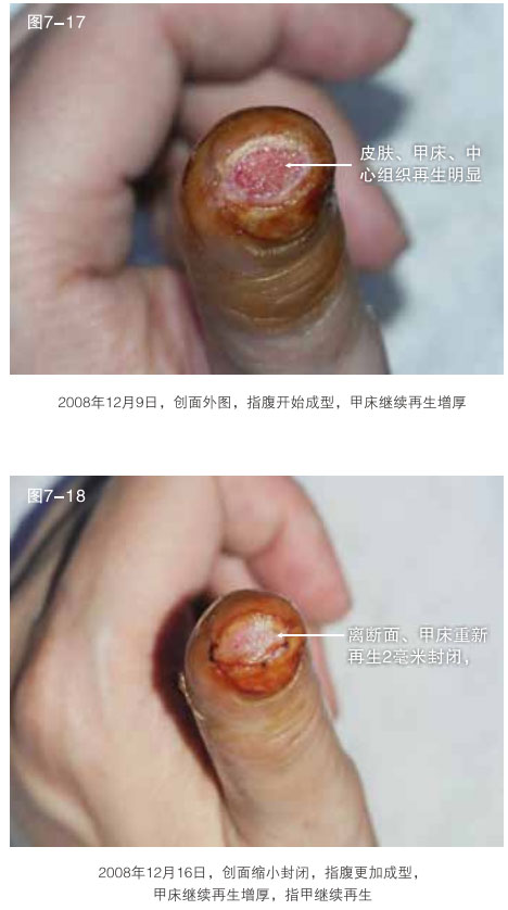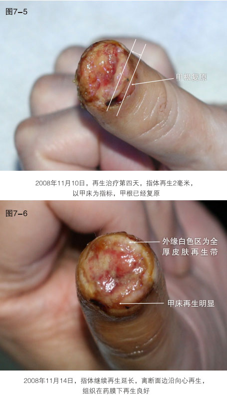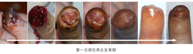 臨床應用資料為手指末節(jié)斷指再生,斷指系指指體離斷性損傷,包括指體的骨骼、肌肉、神經(jīng)、血管、軟組織、皮膚全部組織器官的離斷缺如,這種損傷在外科學治療上,目前采取的是顯微外科的接指技術(shù),但對于末節(jié)離斷,因為血管很小并處于末端,難以將離斷的指體連接成活,無奈只能采取破壞性的離斷面封閉技術(shù),造成終身的指體殘廢。我們的原位再生復原技術(shù),已經(jīng)實現(xiàn)了臨床末節(jié)離斷損傷的原位再生復原。