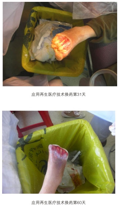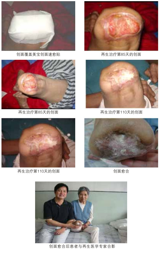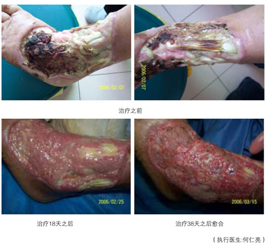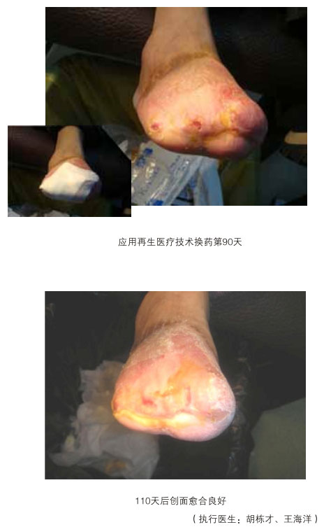 糖尿病潰瘍是當(dāng)今世界還沒(méi)有有效治療方法的潰瘍,本研究再生療法已成功地對(duì)這一潰瘍像治療一般創(chuàng)面那樣,原位再生新的組織,使?jié)冊(cè)偕?,避免了截肢殘廢。動(dòng)脈閉塞性肢體遠(yuǎn)端壞死潰瘍更是世界醫(yī)學(xué)治療的難題,本研究仍可實(shí)現(xiàn)創(chuàng)面的再生復(fù)原愈合。