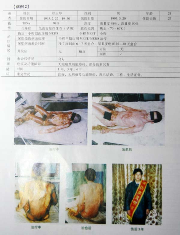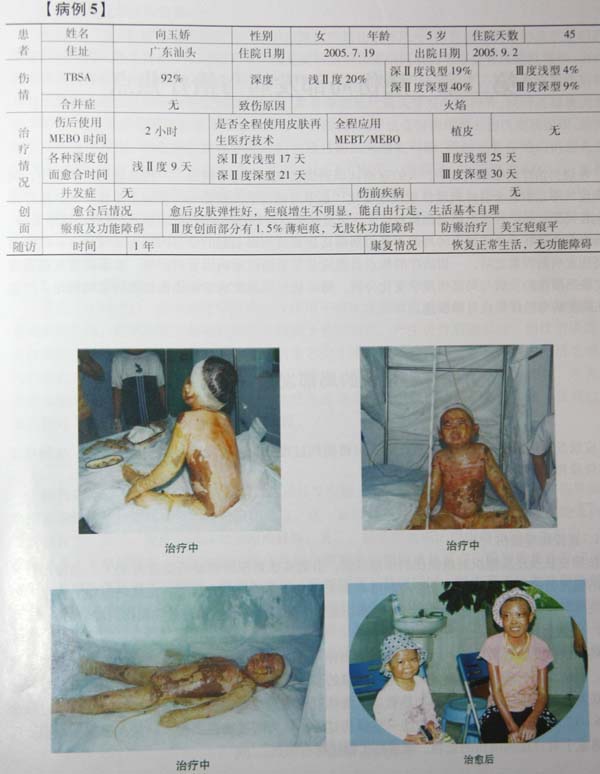 中國中西醫(yī)結(jié)合學(xué)會燒傷專業(yè)委員會全國醫(yī)療網(wǎng)廣大醫(yī)護(hù)人員應(yīng)用燒傷皮膚原位再生技術(shù)成功救治了大量的重癥燒傷患者,在歷次全國燒傷創(chuàng)瘍學(xué)術(shù)會議上,經(jīng)過專家委員會評審,已經(jīng)有100名經(jīng)治醫(yī)師獲得“全國燒傷康復(fù)明星獎(jiǎng)”,以下展示的是部分獲得獎(jiǎng)勵(lì)的大面積重癥燒傷患者應(yīng)用燒傷皮膚原位再生技術(shù)治療前、治療中和康復(fù)后的圖片和病例資料。