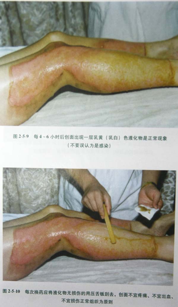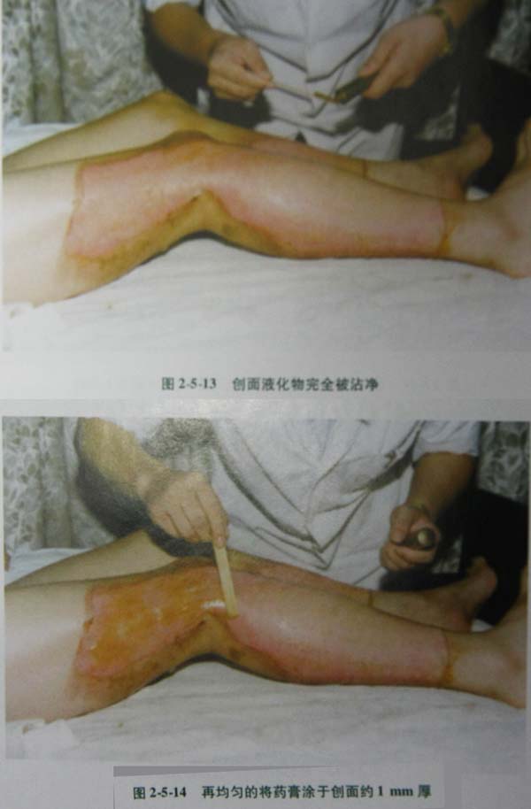 2治療中外涂MEBO按常規(guī)4小時一次換藥,涂藥1mm厚,及時清除創(chuàng)面滲出物。