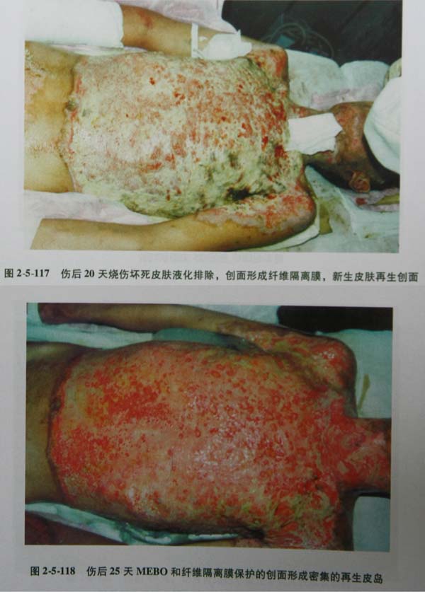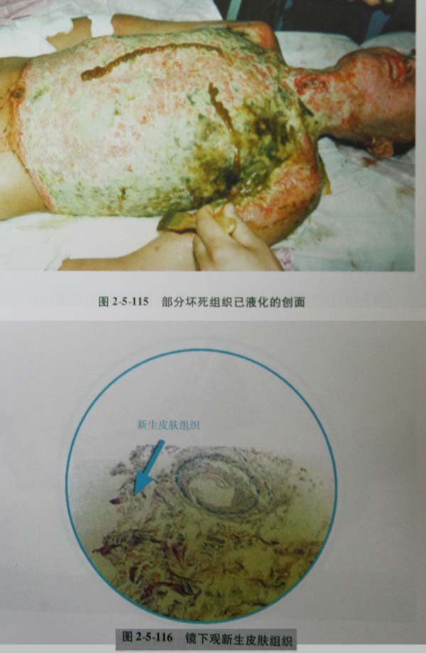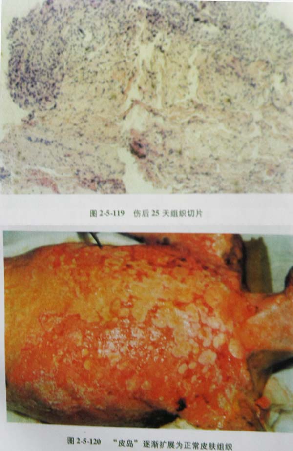 (4)應在傷后20天內徹底清除壞死組織使創(chuàng)面新鮮再植皮,消除創(chuàng)面。