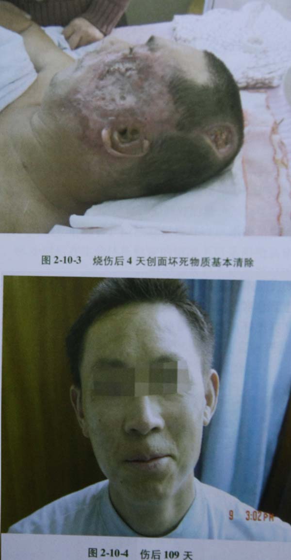 1面部Ⅲ度深型燒傷指除皮膚全層燒傷外,尚合并深筋膜下肌肉組織以及骨質(zhì)的燒傷。