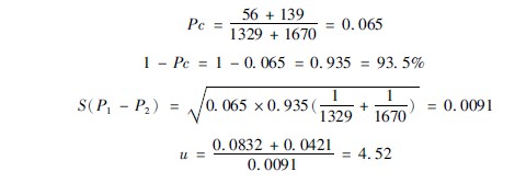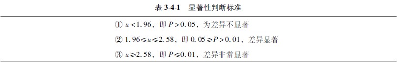率的u檢驗(yàn)是應(yīng)用范圍較為廣的一種顯著性檢驗(yàn)方法,但是在用于樣本率與總體率比較時(shí),或兩個(gè)樣本率比較時(shí),應(yīng)當(dāng)考慮其差異是否由于抽樣誤差所造成的。大樣本的樣本率分布近似正態(tài)分布,可用正態(tài)分布的規(guī)律檢驗(yàn)樣本率與總體率或兩個(gè)樣本率差異的顯著性。其判斷標(biāo)準(zhǔn)為: