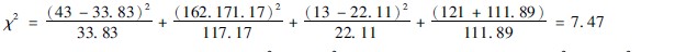 4代入χ2值公式(3411)計(jì)算χ2值: