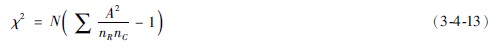 A為各格子的實(shí)際頻數(shù),nR、nC為各實(shí)際頻數(shù)所對(duì)應(yīng)的行的合計(jì)數(shù)和列的合計(jì)數(shù),N為總合計(jì)數(shù)。