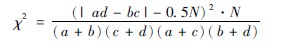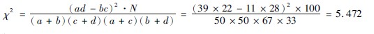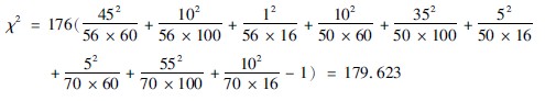 (3)結(jié)果判斷:因n′=1,χ2值=7050<χ2001(6635),故P<001。組間有非常顯著差異。