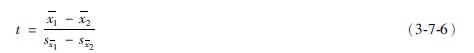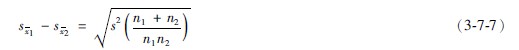 式中x1與x2為兩個(gè)樣本的平均數(shù),sx1-sx2為兩均數(shù)標(biāo)準(zhǔn)差的標(biāo)準(zhǔn)誤。計(jì)算公式為: