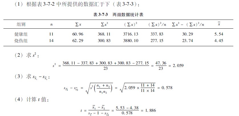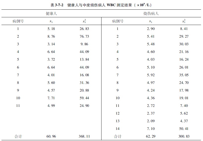 示例375某醫(yī)生研究中度燒傷病人和健康人的白細(xì)胞計(jì)數(shù),資料于下(表372)。問(wèn)他們之間有無(wú)統(tǒng)計(jì)學(xué)差異?