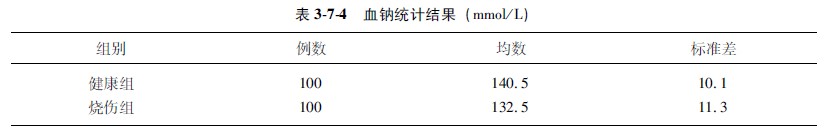 示例376某醫(yī)生對(duì)100例重度燒傷病人和100名健康者的血清鈉檢查結(jié)果進(jìn)行統(tǒng)計(jì)分析,資料匯于下(表374)。問(wèn)組間有無(wú)顯著性意義?