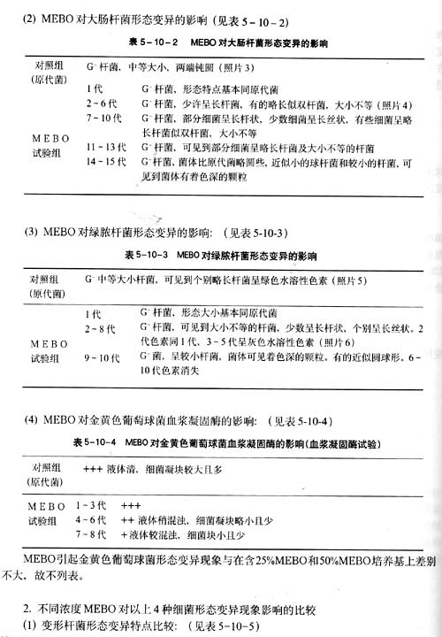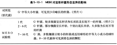 (1) MEBO對變形桿菌形態(tài)變異的影響(見表5-10-1)