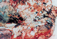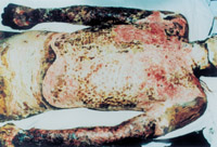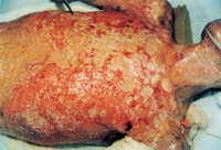 3-20 壞死皮膚被液化排除,組織學(xué)檢查皮下組織有新皮膚組織出現(xiàn)