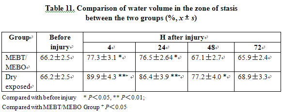 It was found that the application of a non-selective ET receptor antagonist, AK-044, may alleviate the secondary damage to burns wounds resulting from the increase of ET [5]. In this study, the increment of ET and NO in the BRT with MEBT/MEBO group was obviously lower than that in the dry-exposed group. In the former group, the ET/NO ratio in plasma decreased after 1 day toward a normal level of 2.95, representing a timely improvement in the tissue microcirculation status particularly in the zone of stasis. This prevented the occurrence of progressive microthrombosis and prevented the progressive necrosis of tissue by optimizing the wound environment. In the dry-exposed group, ET and NO increased significantly at all phases and the ET/NO ratio in plasma remained much higher than normal level (2.95), usually at around 6. ET might play a dominant role in this change by keeping the micro blood vessel contracted and spasming for a long time resulting in microthrombosis, low vitality of wound tissues and poorer healing process compared to that in the BRT with MEBT/MEBO group. The results suggest that the BRT with MEBT/MEBO group is superior to the dry-exposed group in wound healing time and outcome. However, further study is yet to be conducted for the specific mechanism on how MEBO controls the adequate release of ET and NO from the burns wounds, and on how to promote the return of the ET/NO ratio to normal as rapidly as possible.