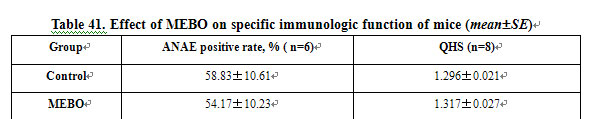 Table 41 shows that MEBO did not affect the cellular and humoral immunologic functions.