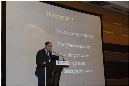 隨后,來(lái)自埃及的亞歷山大大學(xué)外科教授和再生醫(yī)學(xué)專家Dr. Sakr, 再次受邀登上大會(huì)的講臺(tái),講述在埃及創(chuàng)面治療的歷史和未來(lái)趨勢(shì)。Dr. Sakr,博古通今,旁證博引,系統(tǒng)地介紹了從古至今的各種創(chuàng)面療法,包括用蜂蜜,茶葉,植物油等的應(yīng)用;重點(diǎn)論證了濕性療法的合理性和優(yōu)勢(shì),并將再生療法列入關(guān)鍵的創(chuàng)面治療發(fā)展史,展示了各種創(chuàng)面的對(duì)癥處理,并結(jié)合創(chuàng)面的生理及病理變化過(guò)程講解了再生療法。最后,他指出再生療法是創(chuàng)面治療的未來(lái)和趨勢(shì)。