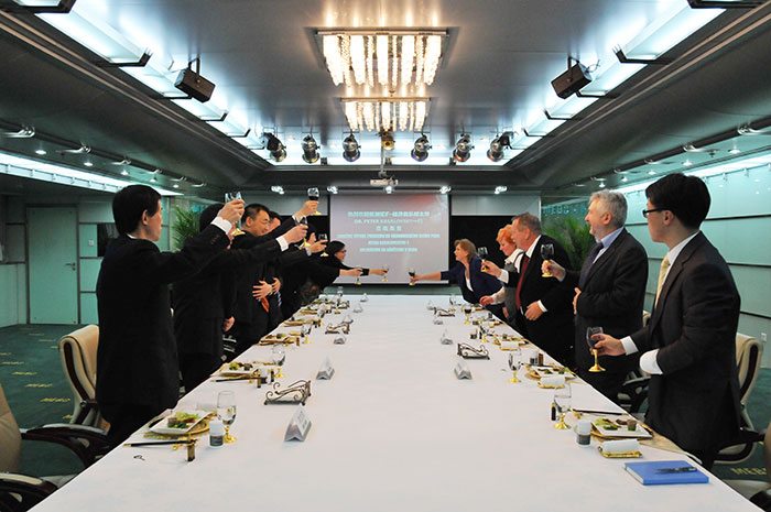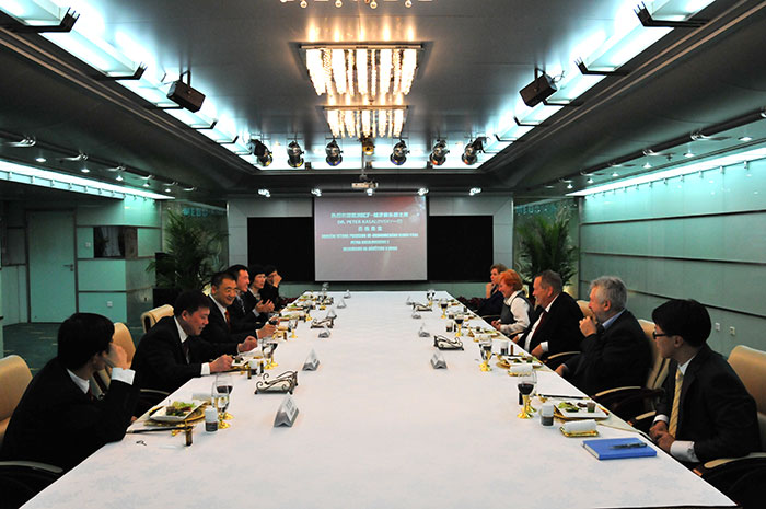 美寶國際集團董事局主席徐榮祥教授對Dr. Kasalovsky一行的來訪進行了盛情的接待,集團總裁楊智斌、副總裁張倩、陳寶琪、孫霞在場陪同。