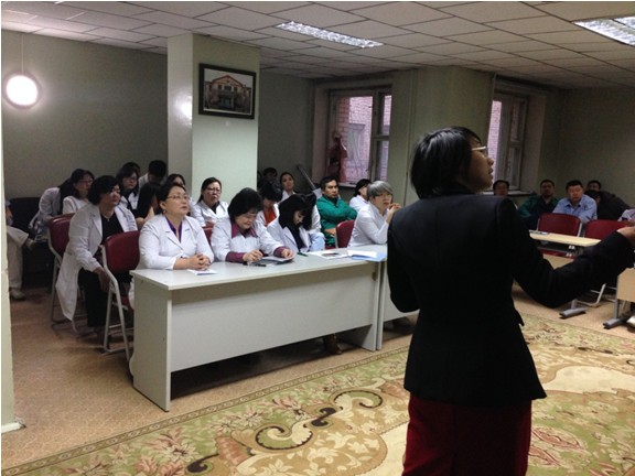 2月18日中午12點(diǎn), 美寶團(tuán)隊(duì)來(lái)到烏蘭巴托的沙斯廷中央醫(yī)院進(jìn)行此行的第一場(chǎng)培訓(xùn),該院是蒙古第一家西醫(yī)院,最初被命名為外科醫(yī)院,在外科手術(shù)方面有著很強(qiáng)的優(yōu)勢(shì),出席培訓(xùn)的有外科醫(yī)生及內(nèi)分泌科醫(yī)生約30人,培訓(xùn)內(nèi)容針對(duì)創(chuàng)傷,手術(shù),糖尿病足及凍瘡創(chuàng)面。該院已有醫(yī)生小范圍試用再生療法,聽(tīng)聞此次培訓(xùn),前來(lái)支持。培訓(xùn)結(jié)束后,有醫(yī)生詢問(wèn)了再生療法在脊柱手術(shù)方面的應(yīng)用,表達(dá)了對(duì)感染治療的憂慮,張美艷為其做了詳細(xì)的解釋。
