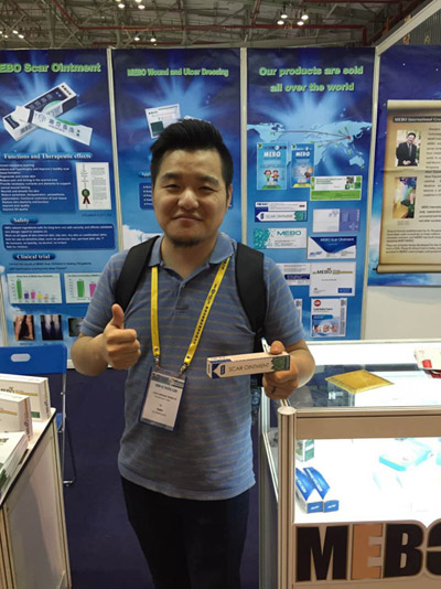 一位來(lái)自俄羅斯的帥哥客戶,在聽(tīng)了美寶工作人員對(duì)美寶國(guó)際以及徐榮祥教授的介紹之后,表示美寶的燒傷與創(chuàng)傷的科技成果將會(huì)幫助很多俄羅斯病人恢復(fù)重生,美寶的產(chǎn)品正是他們苦苦尋找的,流露出一種“眾里尋他千百度”的惆悵與“那人卻在燈火闌珊處”的驚喜。臨走的時(shí)候,帥哥不僅送給美寶工作人員一瓶伏特加作為禮物,還特地對(duì)著美寶的LOGO豎起一個(gè)大拇指,連聲稱“贊”。