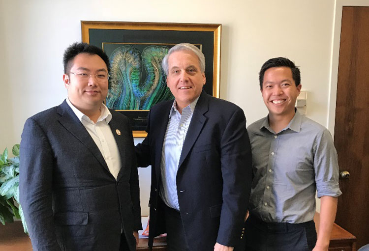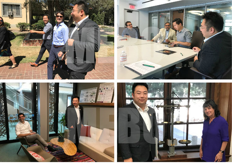 2018年9月18日,美寶集團董事局主席徐鵬應邀正式訪問加州理工學院,陪同訪問的有加州理工學院校友會董事Anthony Chong博士。為了讓徐總對加州理工有個全面深入的了解,校方為徐總的到訪做了精心準備,上午下午共安排8場會議,分別與副校長教務長David Tirrell、副校長Brian Lee、副校長Valerie Otten以及生物和生物工程學系、化學和化工學系、工程和應用科學系、人文和社會科學系的系主任們以及有關專家進行了深度交流,雙方都對對方有了比較清楚的了解并初步探討了在科研、教育、國際交流與拓展、學生創(chuàng)新創(chuàng)業(yè)等方面的合作意向。徐總對加州理工將于2020年落成的專門的神經(jīng)科學研究所、生物和生物工程學系的大腦-機器接口(大腦意識控制機器手)以及化學和化工學系夏皮羅教授獨特的單細胞超聲技術(shù)非常感興趣,表示后續(xù)將更加關注加州理工這幾方面的研究和合作機會。這次一整天的訪問節(jié)奏緊湊,富有成效,為下一步雙方的合作打下了堅實的基礎。