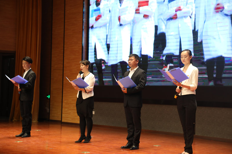 在濱醫(yī)師生代表充滿激情的獻(xiàn)詞后,美寶集團(tuán)董事局主席徐鵬先生、副主席李俐女士,濱州醫(yī)學(xué)院黨委書(shū)記車(chē)先禮共同為榮祥樓揭牌,雙方代表共同見(jiàn)證了這具有歷史意義的一幕。“榮祥樓”樓內(nèi)將設(shè)立“濱州醫(yī)學(xué)院徐榮祥再生醫(yī)學(xué)研究中心”,展示徐榮祥教授生平和美寶集團(tuán),豎立徐榮祥教授塑像和事跡墻。