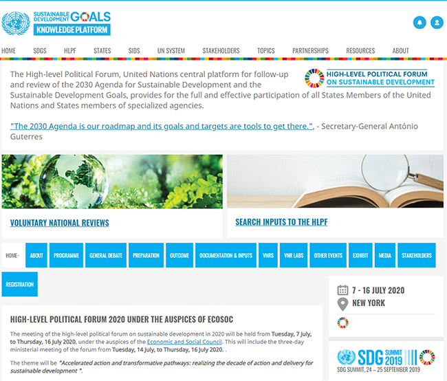 2020年7月7日至16日,一年一度的聯(lián)合國可持續(xù)發(fā)展高級別政治論壇(HLPF)舉行,來自聯(lián)合國所有成員國以及民間社會團體的代表首次以連線方式審查2030年前全球在實現(xiàn)17個可持續(xù)發(fā)展目標上取得的進展、面臨的挑戰(zhàn),并總結經(jīng)驗教訓,繼續(xù)推動聯(lián)合國系統(tǒng)的可持續(xù)發(fā)展議程。