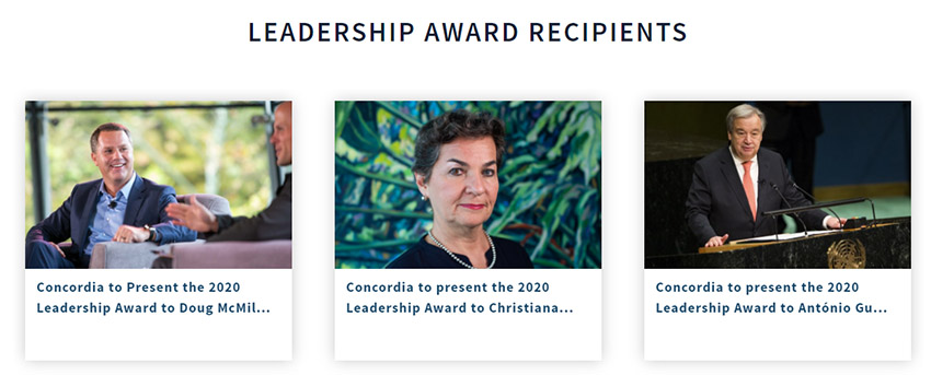 每年Concordia峰會必然會到場多國的現(xiàn)任或前任總統(tǒng)等政界領(lǐng)袖,而此次峰會又值十周年慶典更將匯聚諸多國際核心領(lǐng)袖。美寶集團董事局主席徐鵬特別受邀為包括聯(lián)合國秘書長António Guterres,沃爾瑪首席執(zhí)行官Doug McMillon,全球樂觀主義(Global Optimism)的創(chuàng)始人、前聯(lián)合國氣候變化框架公約執(zhí)行秘書Christiana Figueres在內(nèi)的“Concordia領(lǐng)導力獎”獲得者致賀詞。