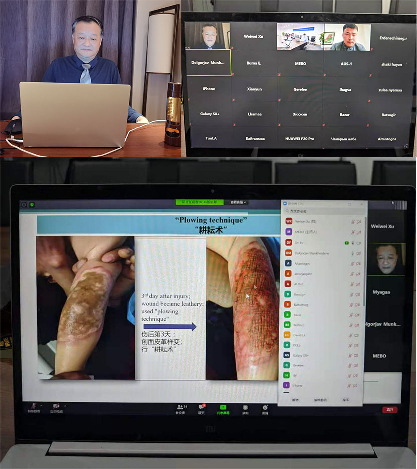 2020年11月21日,美寶“一帶一路”國(guó)際再生醫(yī)學(xué)線上培訓(xùn)課程按預(yù)定計(jì)劃舉行。來自蒙古國(guó)、印度尼西亞的近40名專家利用周末時(shí)間踴躍參加了本次培訓(xùn)。根據(jù)活動(dòng)安排,特邀國(guó)務(wù)院政府特殊津貼獲得者、中國(guó)中西醫(yī)結(jié)合燒傷專業(yè)委員會(huì)顧問、中國(guó)研究型醫(yī)院學(xué)會(huì)創(chuàng)面防治與損傷組織修復(fù)專業(yè)委員會(huì)委員、中國(guó)中西醫(yī)結(jié)合學(xué)會(huì)再生醫(yī)療技術(shù)委員會(huì)創(chuàng)瘍學(xué)組首席專家、《中國(guó)燒傷創(chuàng)瘍雜志》常務(wù)編委,成都市郫都區(qū)人民醫(yī)院燒傷創(chuàng)瘍科學(xué)術(shù)帶頭人付子俊教授作為主講人。