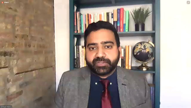 芝加哥大學(xué)徐鵬智庫(kù)主任Abhilash Mishra 博士代表徐鵬智庫(kù)及美寶國(guó)際發(fā)言,以徐鵬智庫(kù)在重鑄公眾對(duì)科學(xué)的信任方面所提供的重要策略及核心方案為基礎(chǔ)講述了新冠疫情下科學(xué)面臨的重大危機(jī)與挑戰(zhàn),講述了平等性、包容性、開(kāi)放性對(duì)科學(xué)發(fā)展的重要意義,特別強(qiáng)調(diào)了跨越邊際的國(guó)際合作對(duì)科學(xué)創(chuàng)新的重要價(jià)值。