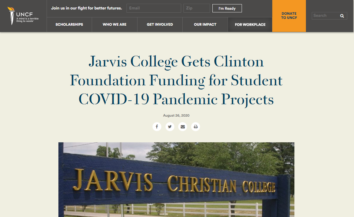 賈維斯基督教學(xué)院,榮獲來(lái)自克林頓基金會(huì)的“新冠病毒學(xué)生行動(dòng)基金”