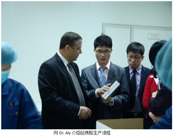之后Dr.Ayman一行在商總和孫總的陪同下,一同參觀了新的廠房設(shè)備,并查看目前正在做最后包裝程序的發(fā)往沙特的創(chuàng)瘍貼產(chǎn)品。Dr.Ayman信心滿滿地說:“未來我們將勢必打造美寶品牌的多產(chǎn)品體系,將快速大力拓展醫(yī)療器械類產(chǎn)品在中東、非洲、南美洲的深入合作和市場營銷,努力將美寶創(chuàng)瘍貼、美寶疤痕軟膏打造成為第二、第三個(gè)濕潤燒傷膏!”