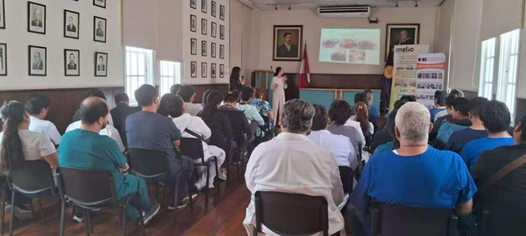在利馬、特魯希略和阿雷基帕等地還舉辦了一系列技術(shù)研討會。多名長期應(yīng)用再生醫(yī)學(xué)技術(shù)的資深醫(yī)生參與了此次再生技術(shù)專業(yè)交流活動。美寶國際技術(shù)部主任徐巍巍系統(tǒng)介紹了再生醫(yī)學(xué)技術(shù)的三種主要標(biāo)準(zhǔn)換藥方式,對醫(yī)護人員運用再生醫(yī)療技術(shù)處理創(chuàng)面的方法進行了系統(tǒng)性規(guī)范,從而確保技術(shù)應(yīng)用更加精準(zhǔn)、高效。