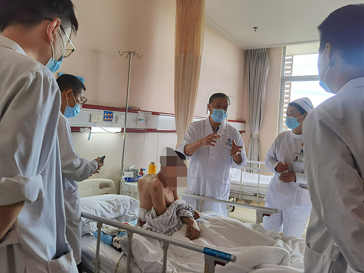 2023年7月12日,《中國(guó)燒傷創(chuàng)瘍雜志》編委、燒傷創(chuàng)瘍?cè)偕t(yī)療技術(shù)臨床專(zhuān)家張強(qiáng),應(yīng)湖北省松滋市人民醫(yī)院普外科李主任的邀請(qǐng),會(huì)診多例燒傷及慢性難愈創(chuàng)面患者,張教授親自示范指導(dǎo)換藥,并就換藥過(guò)程中要注意的細(xì)節(jié)問(wèn)題進(jìn)行了講解,針對(duì)每個(gè)患者的具體情況給出了后續(xù)治療方案,得到了醫(yī)生和患者的高度認(rèn)可。