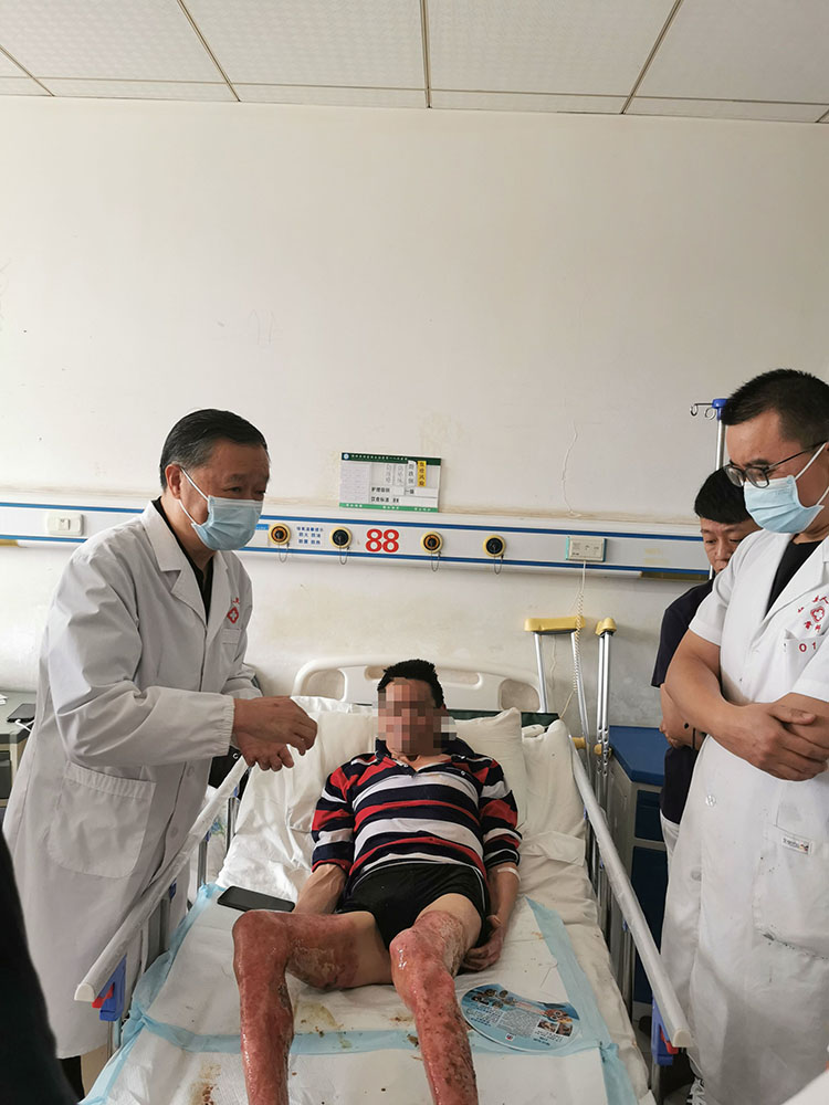2023年7月14日,《中國(guó)燒傷創(chuàng)瘍雜志》編委、燒傷創(chuàng)瘍?cè)偕t(yī)療技術(shù)臨床專(zhuān)家張強(qiáng)應(yīng)邀走訪(fǎng)湖北省荊門(mén)市中醫(yī)醫(yī)院燒傷整形科,會(huì)診一例大面積燒傷患者,協(xié)調(diào)廖醫(yī)生一起給患者進(jìn)行了換藥治療,張教授就患者創(chuàng)面恢復(fù)情況跟封主任進(jìn)行了交流,提出了后續(xù)防疤治療方案,得到患者和臨床醫(yī)生高度認(rèn)可!