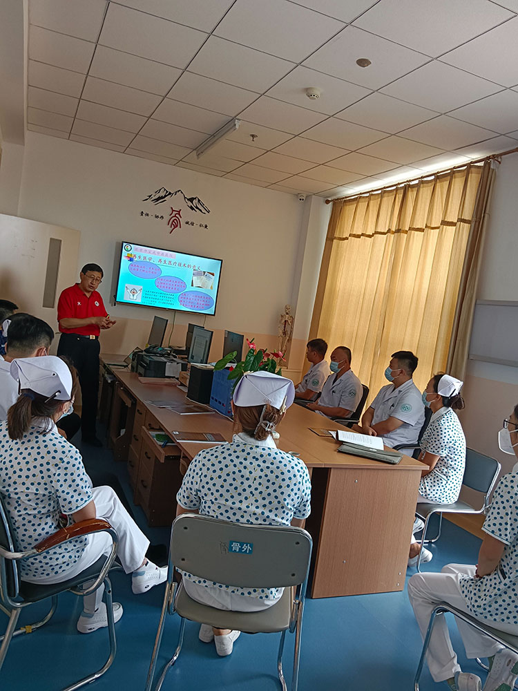 2023年7月26日,中國(guó)中醫(yī)藥高等教育學(xué)會(huì)臨床教育研究會(huì)肛腸分會(huì)常務(wù)理事、北京中西醫(yī)結(jié)合學(xué)會(huì)燒傷專(zhuān)業(yè)委員會(huì)副主任委員、北京中醫(yī)藥學(xué)會(huì)肛腸專(zhuān)業(yè)委員會(huì)委員、《中國(guó)燒傷創(chuàng)瘍雜志》常務(wù)編委張勇,受邀來(lái)到阜新市第二人民醫(yī)院,張勇教授本次主講再生醫(yī)療技術(shù)在難愈合性創(chuàng)面的臨床應(yīng)用和優(yōu)勢(shì),張勇教授用豐富的臨床經(jīng)驗(yàn),詮釋了再生醫(yī)療技術(shù)在護(hù)理工作中的重要性、實(shí)用性,分享了在燒傷、壓瘡、糖尿病足、皮膚科、內(nèi)分泌以及肛腸科等學(xué)科的典型病例,講述了再生醫(yī)療技術(shù)在臨床應(yīng)用中的優(yōu)勢(shì),學(xué)術(shù)交流過(guò)后,張勇教授與護(hù)理部主任,護(hù)士長(zhǎng)進(jìn)一步探討交流,并對(duì)門(mén)診患者進(jìn)行換藥實(shí)操指導(dǎo),此次學(xué)術(shù)交流為醫(yī)院護(hù)理工作鋪墊了新臺(tái)階,為阜新地區(qū)慢性難愈合創(chuàng)面患者帶來(lái)福音。