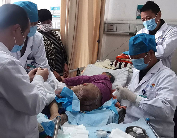 2月27日,應(yīng)邯鄲館陶縣中醫(yī)院之邀,《中國(guó)燒傷創(chuàng)瘍雜志》常務(wù)編委、燒傷創(chuàng)瘍?cè)偕t(yī)療技術(shù)臨床專(zhuān)家趙瑞慶,在該院會(huì)診了一例因燒傷后未愈,在原部位又合并壓力性四度潰瘍、粗隆間外露的80歲的老年患者,創(chuàng)面感染,病情危重。趙教授現(xiàn)場(chǎng)處置后立即組織當(dāng)?shù)蒯t(yī)務(wù)人員討論病情并制定了下一步的診療方案,受到當(dāng)?shù)蒯t(yī)護(hù)人員及家屬的稱(chēng)贊。