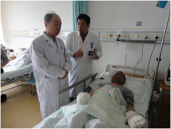 張家港市燒傷創(chuàng)瘍治療基地揭牌儀式之后,中國中西醫(yī)結(jié)合學(xué)會燒傷專業(yè)委員會主任委員肖摩教授、趙瑞慶教授應(yīng)邀到燒傷科參觀指導(dǎo)工作。聽取錢明元主任的介紹,特別是應(yīng)用再生醫(yī)療技術(shù)治療殘余創(chuàng)面和疤痕等方面的經(jīng)驗(yàn)。并對住院的燒傷患者進(jìn)行了會診和病例分析討論。
