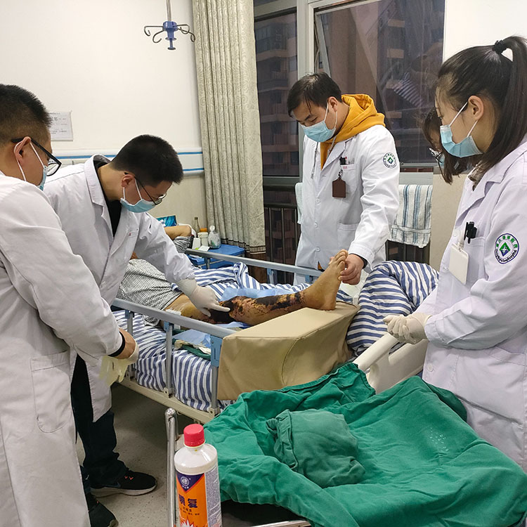 2023年3月16日,應(yīng)重慶市渝北區(qū)新興醫(yī)院邀請,渝北區(qū)中醫(yī)院李先文教授應(yīng)邀到醫(yī)院外科針對燒傷創(chuàng)瘍病人進(jìn)行教學(xué)查房,指導(dǎo)再生醫(yī)療技術(shù)清創(chuàng)、換藥并會(huì)診了兩例燒傷病人,兩例壓瘡病人,受到了科室醫(yī)護(hù)人員以及病人的高度認(rèn)可。