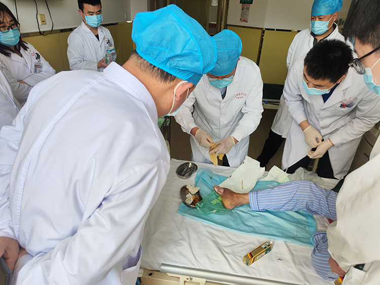 2023年3月15日,中國中西醫(yī)結(jié)合學(xué)會(huì)燒傷專業(yè)委員會(huì)醫(yī)療部張強(qiáng)主任,應(yīng)邀走訪湖北武漢市漢口醫(yī)院和湖北省康復(fù)醫(yī)院,會(huì)診多例壓瘡患者。張主任示范了再生醫(yī)療技術(shù)規(guī)范換藥及處理技巧,并同醫(yī)師們溝通了腦?;颊咂c患者營養(yǎng)方案,后期換藥注意事項(xiàng)等,得到大家一致好評!