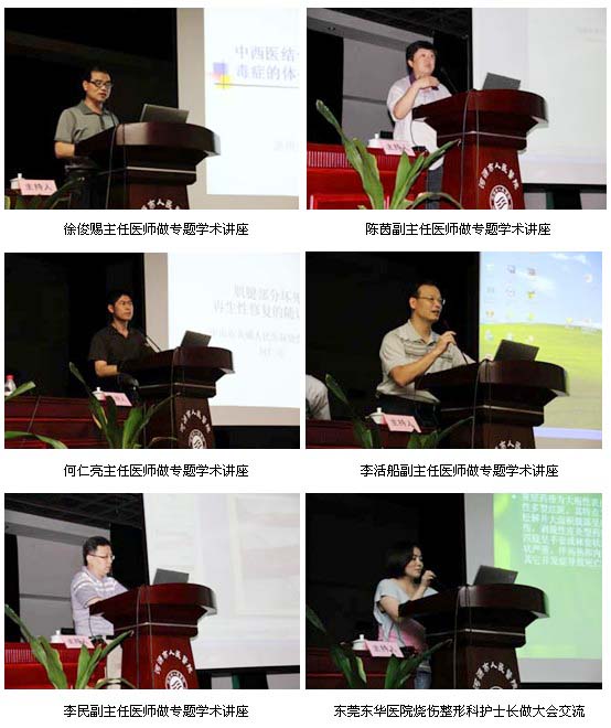 王洪生研究員首先以“燒傷皮膚原位再生復(fù)原技術(shù)在重度以上燒傷系統(tǒng)治療的要點(diǎn)”為題進(jìn)行了專題學(xué)術(shù)講座;隨后,唐乾利教授講解了“皮膚潰瘍創(chuàng)面處理的中西醫(yī)基礎(chǔ)與臨床研究近況”;王達(dá)利教授講授了“瘢痕疙瘩來源干細(xì)胞的生物學(xué)特性鑒定”;賀全勇教授講授了“燒傷感染的防治”;譚軍教授講授了“點(diǎn)陣激光治療增生性瘢痕”;張一鳴教授講授了“燒傷瘢痕的外科治療”; 省內(nèi)專家廣東省中西醫(yī)結(jié)合學(xué)會(huì)燒傷專業(yè)委會(huì)副主任委員、中山大學(xué)附屬五院燒傷整形科主任辛儉副主任醫(yī)師;廣東省中西醫(yī)結(jié)合學(xué)會(huì)燒傷專委會(huì)副主任委員、深圳陽光醫(yī)院院長張華彬主任醫(yī)師;廣東省中西醫(yī)結(jié)合學(xué)會(huì)燒傷專委會(huì)副主任委員、深圳市第六人民醫(yī)院梁智主任醫(yī)師;廣東省中西醫(yī)結(jié)合學(xué)會(huì)燒傷專委會(huì)副主任委員、廣東醫(yī)學(xué)院附屬惠州醫(yī)院(惠州市中心醫(yī)院)燒傷整形科主任徐俊賜主任醫(yī)師;廣東省中西醫(yī)結(jié)合學(xué)會(huì)燒傷專業(yè)委員會(huì)常委、深圳市龍崗中心醫(yī)院燒傷整形科主任陳茵副主任醫(yī)師;廣東省中西醫(yī)結(jié)合學(xué)會(huì)燒傷專業(yè)委員會(huì)委員、佛山南海人民醫(yī)院燒傷整形科主任李民副主任醫(yī)師;廣東省中西醫(yī)結(jié)合學(xué)會(huì)燒傷專業(yè)委員會(huì)常委兼秘書、中山黃圃人民醫(yī)院皮膚與燒傷創(chuàng)瘍科主任何仁亮主任醫(yī)師;廣東省中西醫(yī)結(jié)合學(xué)會(huì)燒傷專業(yè)委員會(huì)常委、開平市婦幼保健院院長李活船副主任醫(yī)師分別以“小兒重度燒傷治療”、“皮膚擴(kuò)張技術(shù)在燒傷瘢痕中的運(yùn)用”、“皮膚圓錐體結(jié)構(gòu)的病理學(xué)觀察”、“皮膚微粒皮種植修復(fù)大面積燒傷創(chuàng)面”、“中西醫(yī)治療燒傷膿毒癥”為題進(jìn)行了專題講座。在學(xué)術(shù)講座中來自國內(nèi)各省的專家利用大量詳實(shí)的圖片資料,重點(diǎn)向與會(huì)的專家、學(xué)者和醫(yī)護(hù)人員講述了燒傷皮膚原位再生復(fù)原醫(yī)療技術(shù)等中西醫(yī)結(jié)合方法在特重度燒傷并發(fā)癥及增生性瘢痕防治方面的進(jìn)展,由于學(xué)術(shù)講座重點(diǎn)突出、內(nèi)容豐富、貼近臨床,方法簡便實(shí)用、臨床效果顯著,與會(huì)代表反映強(qiáng)烈。學(xué)習(xí)班結(jié)束后,學(xué)員們進(jìn)行了廣泛而深入地交流。