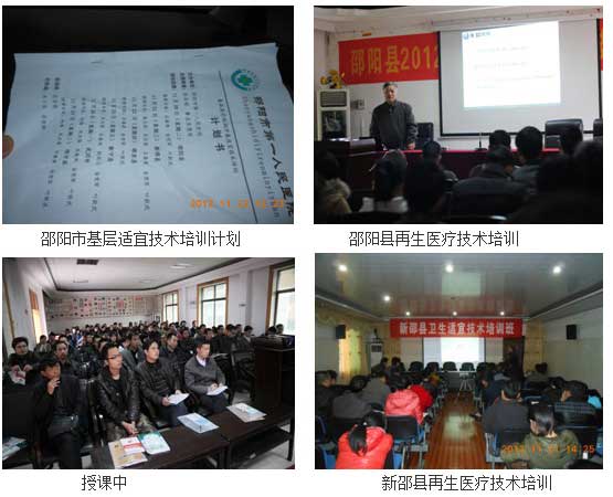 在金秋收獲的季節(jié),湖南省衛(wèi)生廳科技處關(guān)于基層適宜技術(shù)培訓(xùn)在省內(nèi)全面展開,2012年11月20日至12月5日,由邵陽市衛(wèi)生局,邵陽市第一人民醫(yī)院聯(lián)合主辦了再生醫(yī)學(xué)進基層系列講座活動,基層適宜技術(shù)培訓(xùn)在湖南邵陽市新邵縣、邵陽縣、邵東縣、新寧縣、武岡市、綏寧縣展開,先后為上述各縣鄉(xiāng)鎮(zhèn)衛(wèi)生院及社區(qū)全科醫(yī)生進行了培訓(xùn),參訓(xùn)人員共計526人。