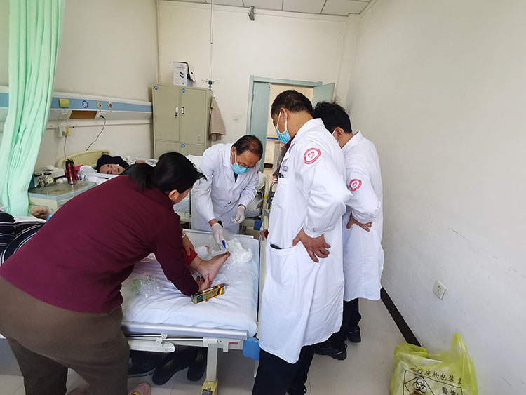 張強(qiáng)主任在英山縣人民醫(yī)院指導(dǎo)電擊傷患者治療