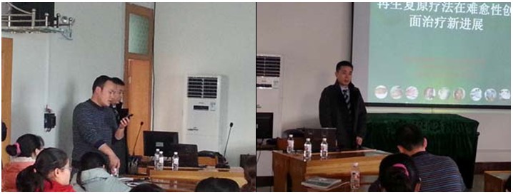 全院各科室共70余人參加了此次學(xué)術(shù)講座。專題講座由該院姚文興院長主持。王主任在講座中結(jié)合了大量的臨床病例圖片及錄像資料,主要針對深度燒傷及各類難愈性創(chuàng)傷、潰瘍創(chuàng)面、糖尿病足、放射性潰瘍的規(guī)范化處理方法與技巧、注意事項(xiàng)等進(jìn)行了細(xì)致講解,強(qiáng)調(diào)創(chuàng)面處理要大膽清創(chuàng)、減壓、去除壞死組織,并保持創(chuàng)面生理的濕潤環(huán)境,實(shí)現(xiàn)創(chuàng)面的再生復(fù)原,并建議對病人深達(dá)真皮層以下愈合后創(chuàng)面應(yīng)進(jìn)行防疤處理治療。各種創(chuàng)面治療后理想的愈合效果讓醫(yī)生們對再生醫(yī)療技術(shù)有了更深刻的認(rèn)識,得到了在場醫(yī)護(hù)人員的認(rèn)可。