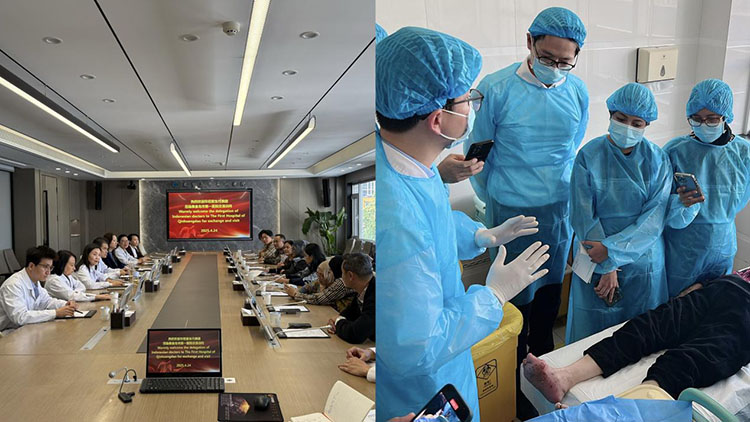 23日,代表團(tuán)抵達(dá)北京市豐臺(tái)區(qū)中醫(yī)醫(yī)院,醫(yī)院燒傷整形與創(chuàng)面修復(fù)科組織了內(nèi)容豐富的參觀與學(xué)術(shù)交流活動(dòng)。上午,代表團(tuán)參觀了病區(qū)與門(mén)診,并觀摩了急慢性創(chuàng)面的再生醫(yī)療技術(shù)規(guī)范換藥操作。隨后,醫(yī)院醫(yī)護(hù)人員圍繞糖尿病足潰瘍、大面積燒傷、褥瘡等臨床案例進(jìn)行了詳細(xì)講解。來(lái)自印尼的兩位醫(yī)生也分享了該技術(shù)在印尼的臨床應(yīng)用經(jīng)驗(yàn),引發(fā)了現(xiàn)場(chǎng)的積極討論,拓寬了雙方在創(chuàng)面管理領(lǐng)域的理解與交流。