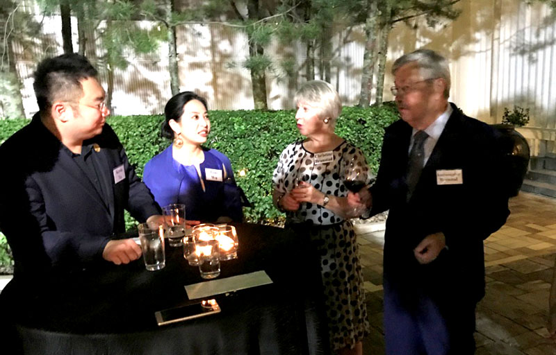 晚宴開(kāi)始前,布蘭斯塔德致辭感謝在場(chǎng)所有對(duì)促進(jìn)中美關(guān)系做出貢獻(xiàn)的工作人員和政企精英,并回顧了他與習(xí)主席友誼的淵源以及他與現(xiàn)任美國(guó)總統(tǒng)的友好關(guān)系。席間大使與夫人特地來(lái)到徐鵬桌上與其暢聊20多分鐘,回顧了雙方數(shù)次見(jiàn)面的友誼之旅,特別是2015年9月22日在習(xí)主席訪美的西雅圖站,時(shí)任艾奧瓦州長(zhǎng)的布蘭斯塔德和加州州長(zhǎng)顧問(wèn)的徐鵬共聚省州長(zhǎng)論壇,當(dāng)時(shí)布蘭斯塔德攜帶了習(xí)主席早年在艾奧瓦州與他的合影老照片請(qǐng)習(xí)主席簽字留念,習(xí)主席收下了但沒(méi)有當(dāng)場(chǎng)簽還。出人意料的是當(dāng)晚的宴會(huì)上習(xí)主席帶來(lái)了簽署其姓名和日期并已經(jīng)裝裱好的老照片贈(zèng)予布蘭斯塔德,令其感動(dòng)萬(wàn)分,這張珍貴的老照片被布蘭斯塔德隨身攜帶,擺放在了其大使官邸的會(huì)客廳中。這件事也深深觸動(dòng)了徐鵬,使其對(duì)習(xí)主席的為人和其領(lǐng)導(dǎo)下的中國(guó)的前途充滿信心。