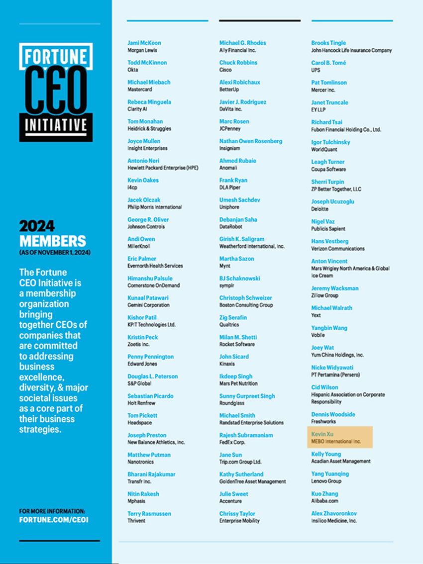 2024 年 12 月,《財富》雜志跨年期刊正式公布了財富 CEO 倡議 2024 年名單,美寶集團董事局主席、APEC 2023 籌委會主席徐鵬再度成功入列。自 2017 年財富 CEO 倡議發(fā)起以來,這已是徐鵬第五次登上該名單。