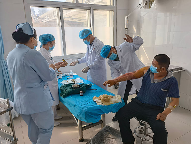 2022年9月26日,再生醫(yī)學(xué)知名專家、《中國燒傷創(chuàng)瘍雜志》常務(wù)編委趙瑞慶主任應(yīng)邀到高平民生燒傷??漆t(yī)院會(huì)診兩例機(jī)動(dòng)三輪車側(cè)翻水箱漏水燒傷患者,行耕耘減張手術(shù),規(guī)范操作運(yùn)用再生醫(yī)療技術(shù)換藥治療,并制定治療方案,收到醫(yī)護(hù)好評(píng)、患者滿意!