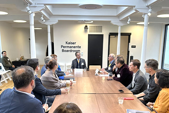 當(dāng)?shù)貢r間5月2日下午,在舊金山灣區(qū)委員會總部,美寶集團董事局主席及灣區(qū)委員會執(zhí)行董事兼國際委員會共同主席徐鵬,與灣區(qū)委員會首席執(zhí)行官Jim Wunderman共同會見了到訪的墨西哥駐美大使Esteban Moctezuma Barragán 一行。參與會見的還有灣區(qū)委員會經(jīng)濟研究院高級主管、前院長Sean Randolph 等人。會談中徐鵬介紹了美寶國際今年啟動的與墨西哥瓜達拉哈拉人民醫(yī)院合作的燒傷臨床研究項目,并表示在生物科技方面美墨雙方有很廣闊的合作空間。大使表示墨西哥與灣區(qū)委員會有很多領(lǐng)域可以加強合作,Jim表示明年灣區(qū)委員會計劃組團去墨西哥考察,加強雙邊合作。雙方并就2023 APEC會議墨西哥的工作準(zhǔn)備進行了交流。Jim帶領(lǐng)大使一行上頂層甲板美寶花園游覽并觀賞了灣區(qū)景色。